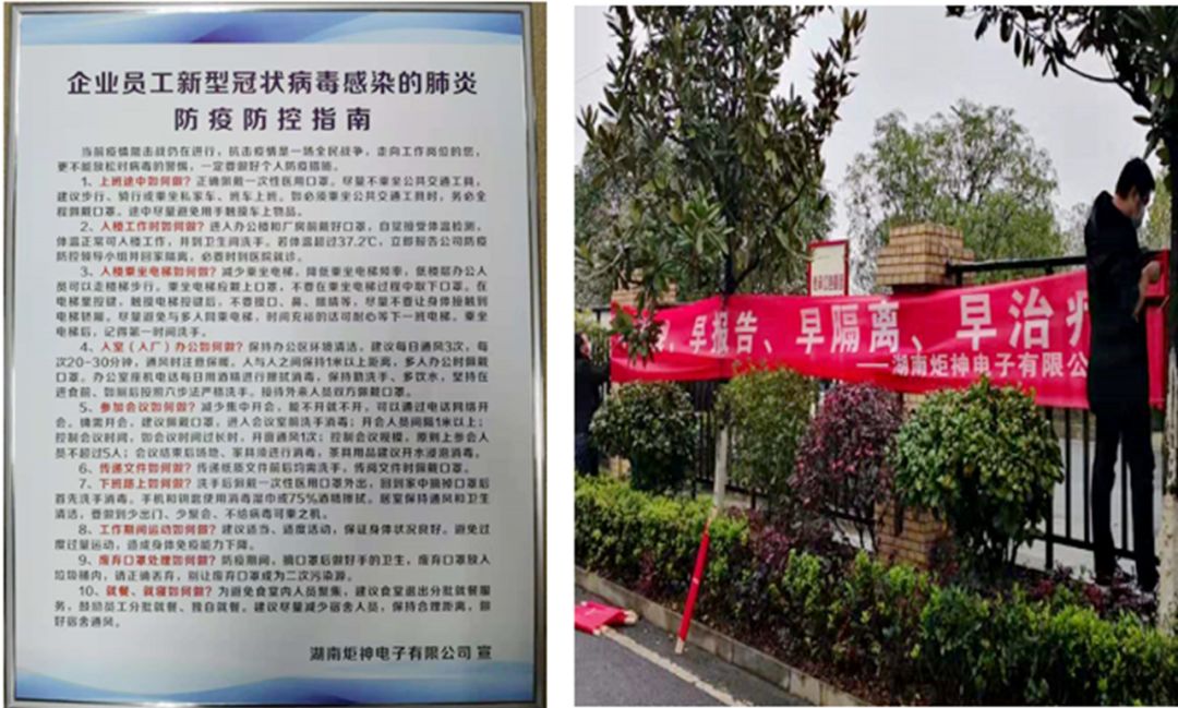 為應(yīng)對(duì)新型冠狀病毒感染的肺炎疫情,落實(shí)以企業(yè)防控為主的綜合防控措施,湖南炬神電子有限公司提前謀劃、周密部署,積極做好復(fù)工復(fù)產(chǎn)前各項(xiàng)準(zhǔn)備措施,為早日恢復(fù)生產(chǎn),保障社會(huì)經(jīng)濟(jì)正常穩(wěn)定運(yùn)行打響了一場(chǎng)全員戰(zhàn)“疫”。